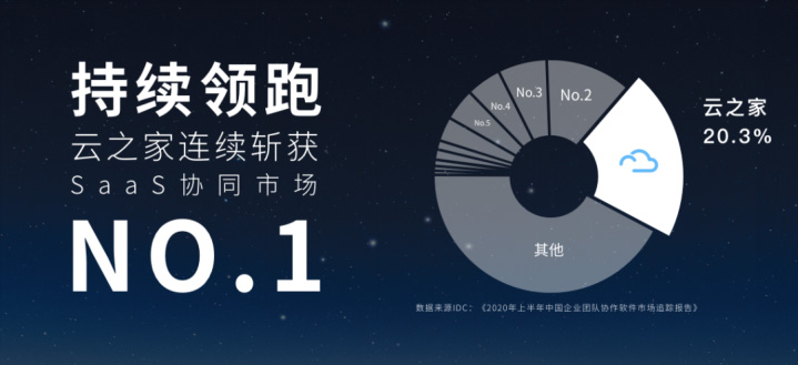 根據(jù)IDC近日發(fā)布的最新《2020年上半年中國企業(yè)團(tuán)隊(duì)協(xié)作軟件市場追蹤報(bào)告》顯示:上半年云之家以 20.3%的份額再次蟬聯(lián)SaaS企業(yè)團(tuán)隊(duì)協(xié)作市場第一名。據(jù)往年IDC數(shù)據(jù)顯示:云之家從2015年開始,連續(xù)3年在中大企業(yè)移動(dòng)辦公市場占有率第一。從2018年至今,在SaaS企業(yè)團(tuán)隊(duì)協(xié)作市場持續(xù)第一。