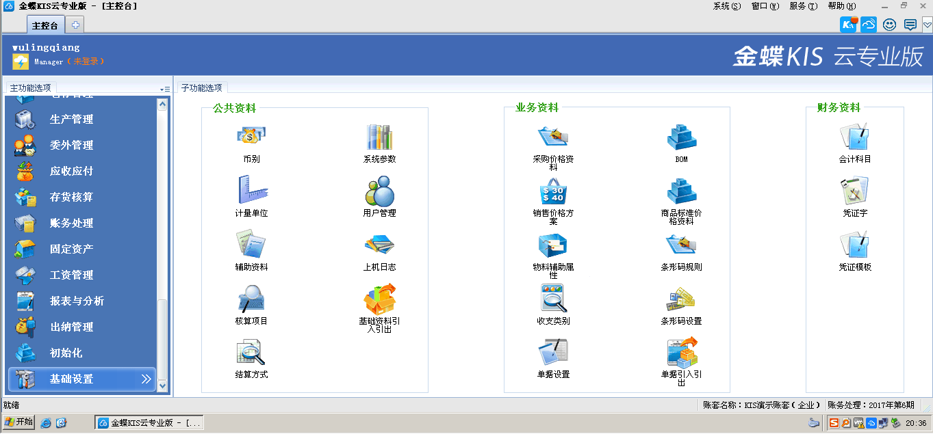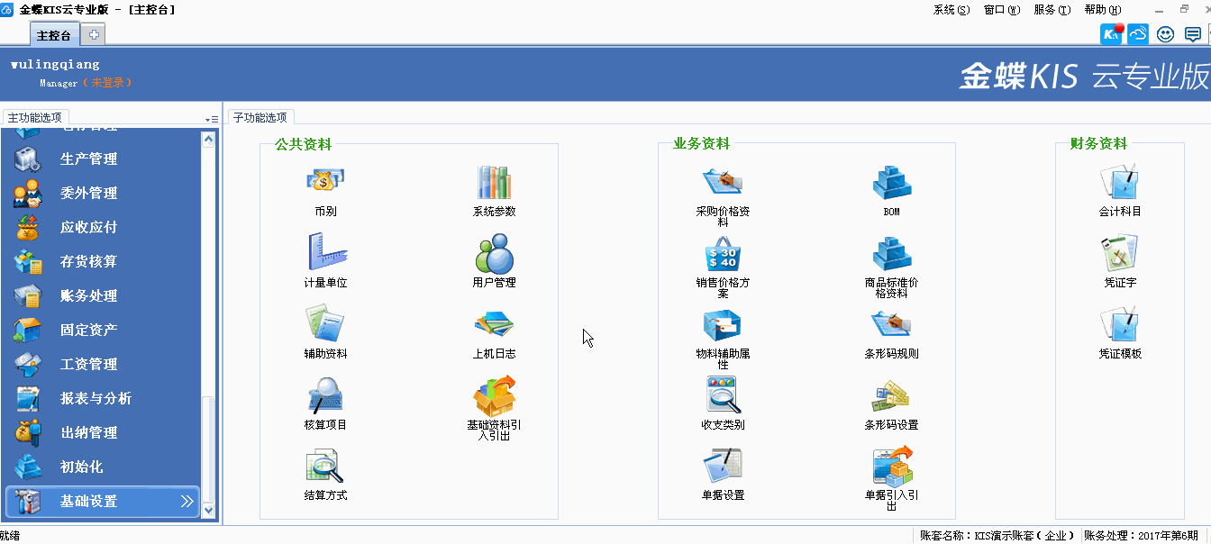 步驟一、在全部核算項目界面,然后單擊【物料】,點管理