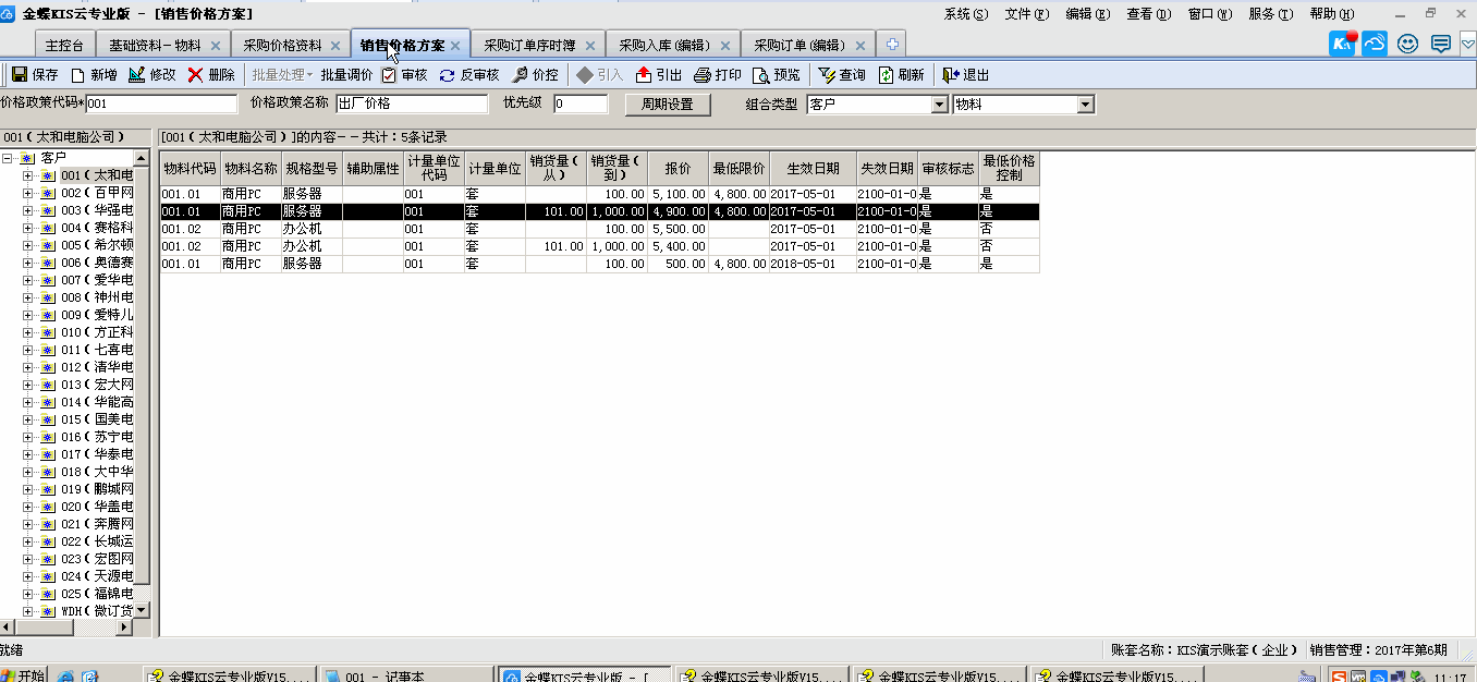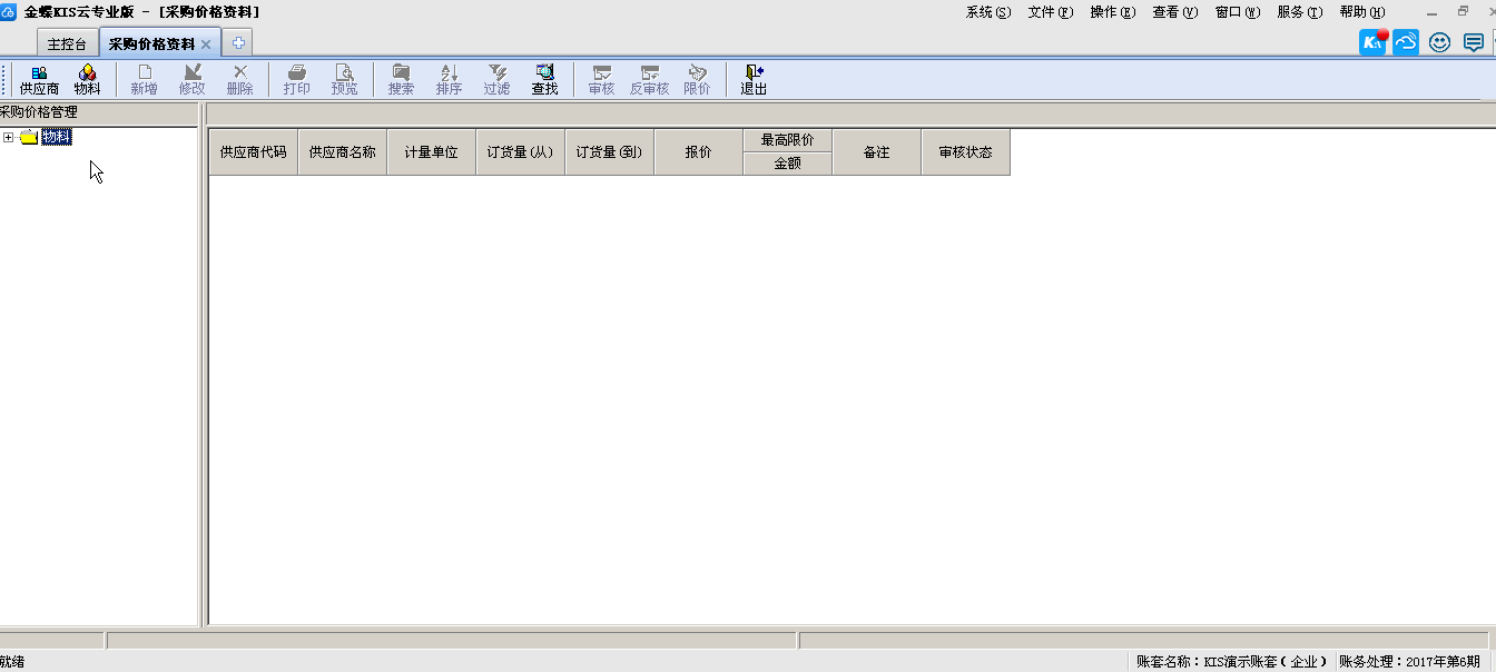 價格資料引入進去之后,系統(tǒng)默認是非審核狀態(tài)的,按shift鍵進行全選之后,選擇審核即可。