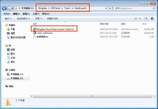 2) 通過執(zhí)行第一個(gè)文件來(lái)安裝數(shù)據(jù)引入工具(如果安裝中遇到問題可以參考“安裝說明.txt”來(lái)解決)。