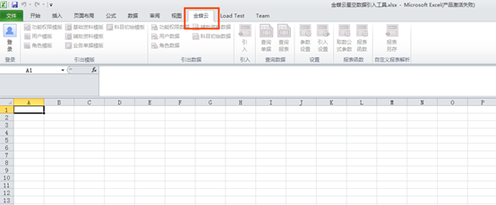 第二步:點(diǎn)擊【金蝶云星空數(shù)據(jù)引入工具】或任意Excel文件來(lái)打開該工具,在打開的Excel中可以看到一個(gè)【金蝶云】頁(yè)簽。