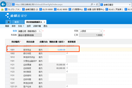 第五步:在系統(tǒng)中可以查看到上面引入的科目初始數(shù)據(jù)。