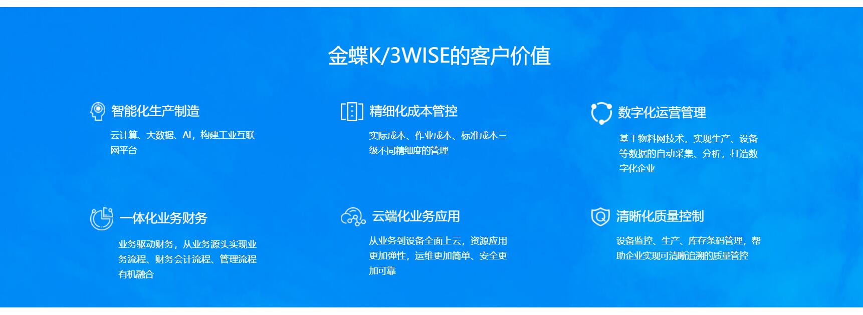 金蝶K/3 WISE是一款面向成長型企業(yè),適應(yīng)企業(yè)在快速成長過程中業(yè)務(wù)與管理的不斷變化的信息化平臺,實現(xiàn)云服務(wù)、ERP、物聯(lián)網(wǎng)的融